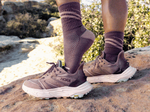 A slip-on designed for simple on-and-off. the Anacapa 2 Freedom paves the way for adventuring outdoors. A specially designed heel flexes and springs back for easy entry. working with the integrated tongue to make sliding in a breeze. HOKA geometry and a Vibram Megagrip outsole keep this hiker adventure-ready while sustainable materials like 55% recycled polyester meshes. a soy-based PU sockliner. and 30% sugarcane EVA help it tread more lightly.