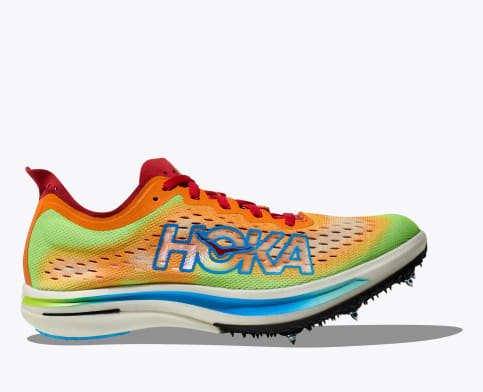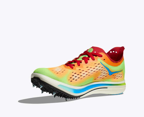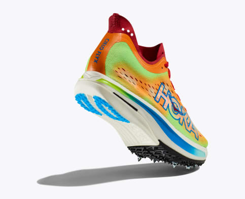When it comes to cushioning. we prescribe to a very strict. more is more¡± policy. Built to the maximum World Athletics standards. the new Cielo FLYX breaks the mold with 25mm of bouncy. high resiliency PEBA foam. Weve employed a composite plate that doubles as both a midsole propulsion plate and outsole spike plate. along with an ultra-breathable. engineered mesh upper. to deliver an elite race spike that will tackle anything from 1500 meters to 10K and every distance in between.