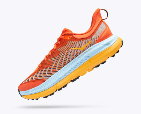 A pinnacle product for technical trail. the Mafate Speed 4 makes its debut. distilling what weve seen in the EVO Mafate and Mafate Speed. A familiar HOKA classic. just updated with new textiles and construction. including a breathable. single layer jacquard mesh and two-part PROFLY midsole with our lightest. most responsive HOKA foam just underfoot.